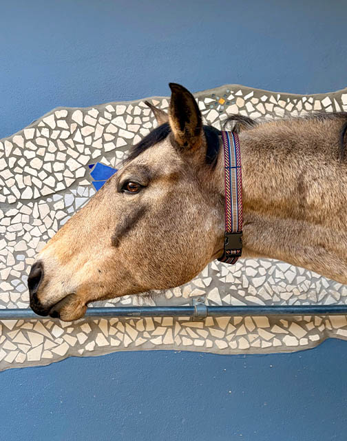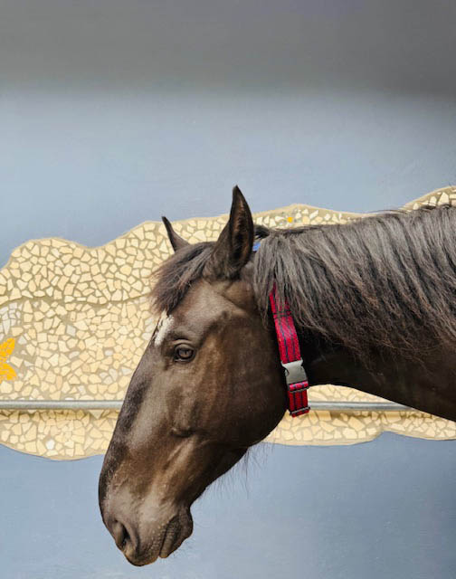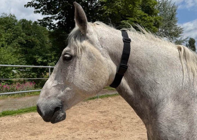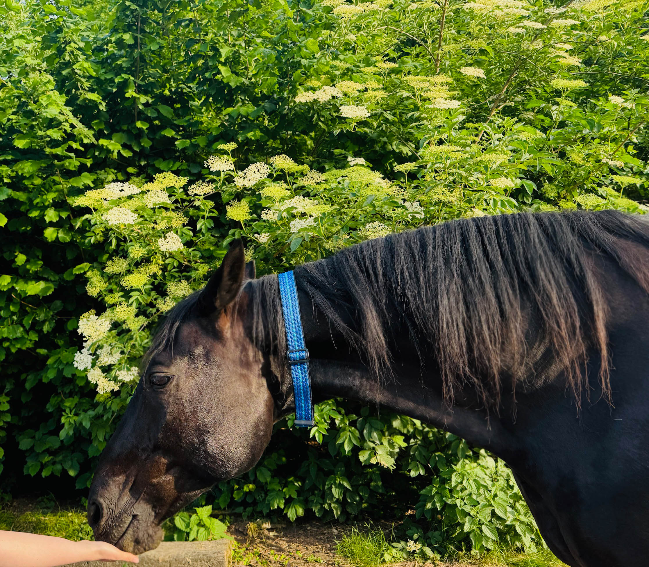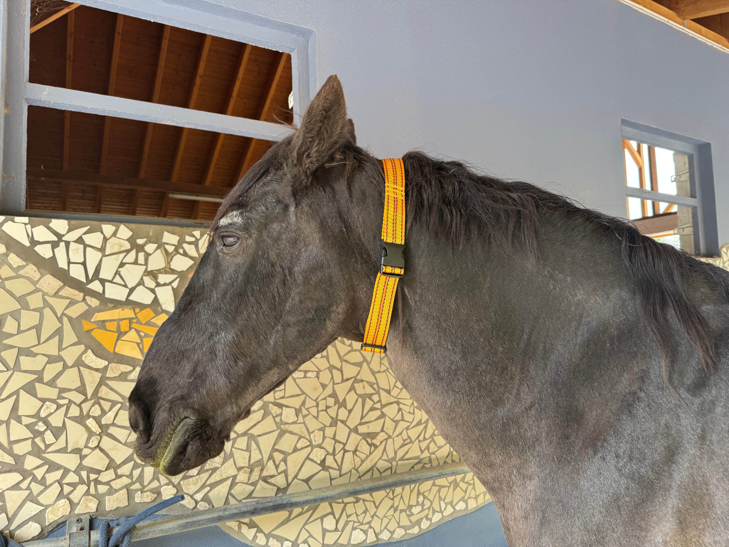 Wichtig: bitte belasse auf dem Foto die verwendete Halsband-Länge wie sie dein Pferd trug. Muss der Verschluss z.B. getauscht werden, könnte das Gurtband kürzer werden.