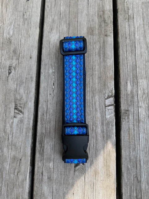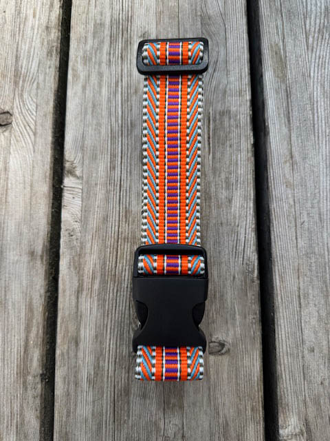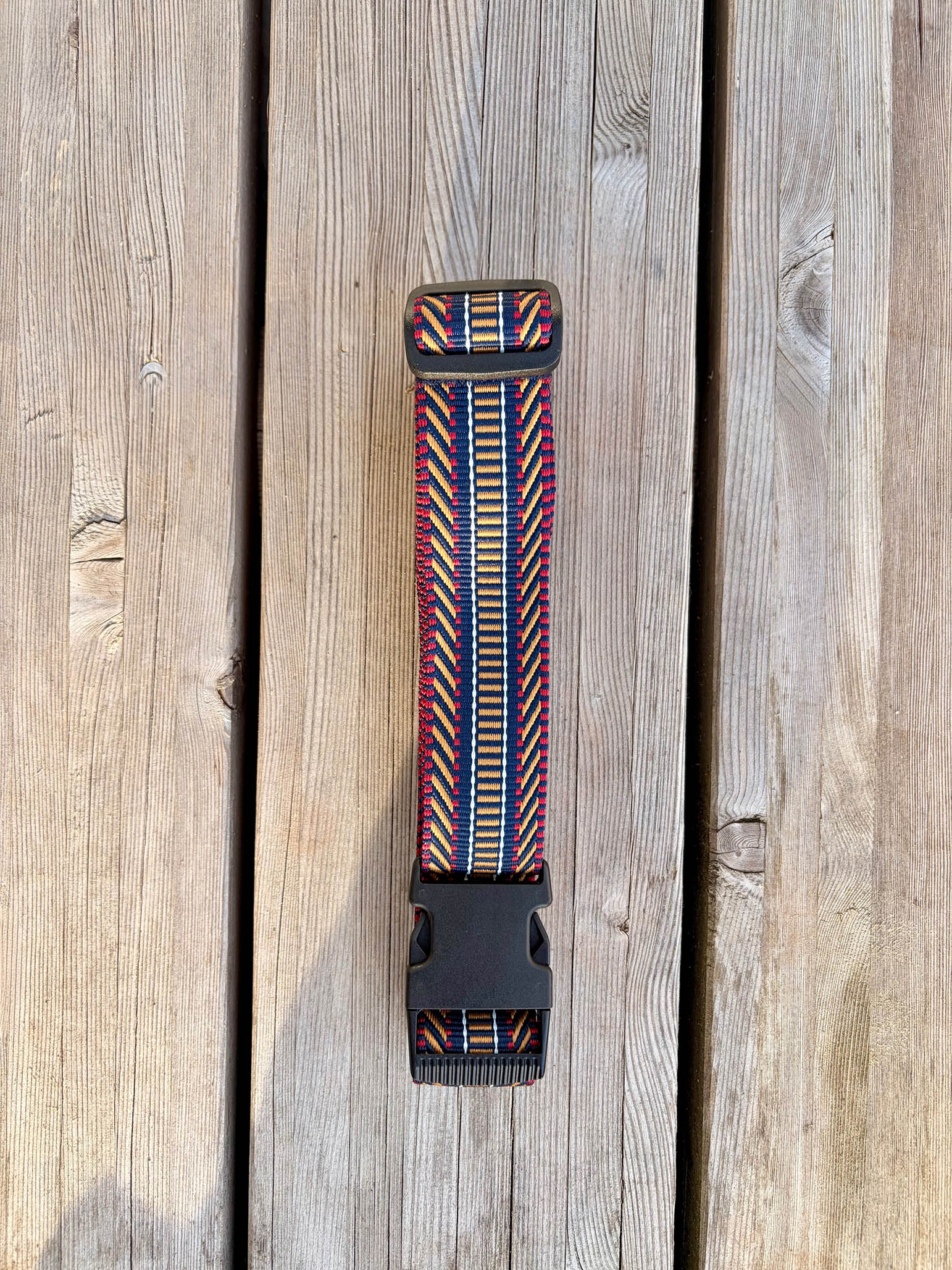 Unsere Halsbänder werden aus strapazierfähigem Polyestergewebe gefertigt. Verschluss und Schnalle bestehen aus robustem Kunststoff.