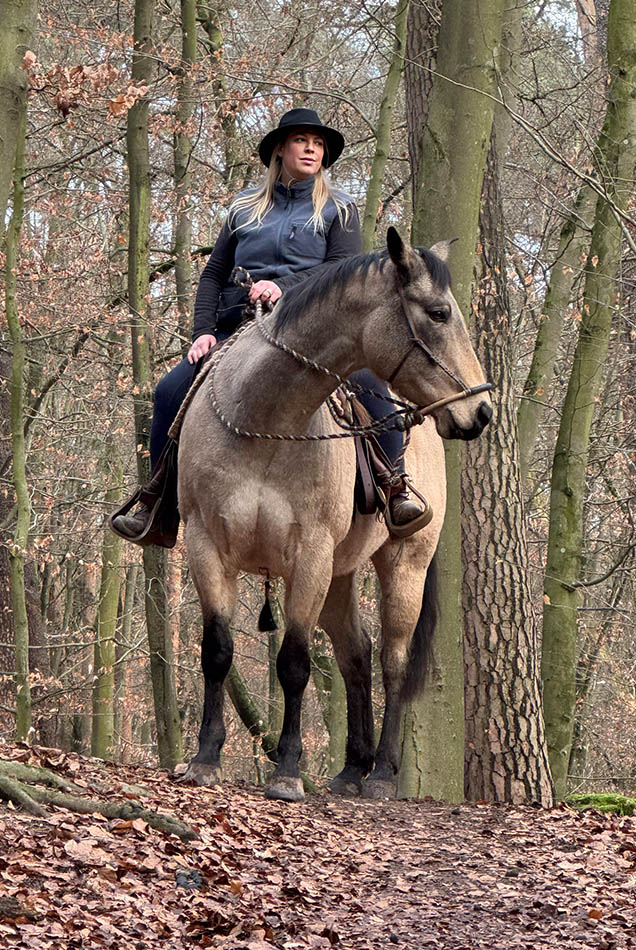 Andy ist (m)ein echtes Traumpferd. Als solide ausgebildeter Quarter Horse Wallach ist er väterlicherseits Hancock- und mütterlicherseits stark King-liniengezogen. Sein Vater, „JM Wild Bill Hancock“, wurde 2006 als einer der ersten „Hancocks“ aus den USA nach Deutschland importiert. Diese Linie zeichnet sich besonders durch ihre Größe, ihr starkes Fundament sowie ihre ruhige und gelassene Art aus. Sein Großvater ist Andy Poco, dessen Besitzer kein geringerer als Alan Jacob war.