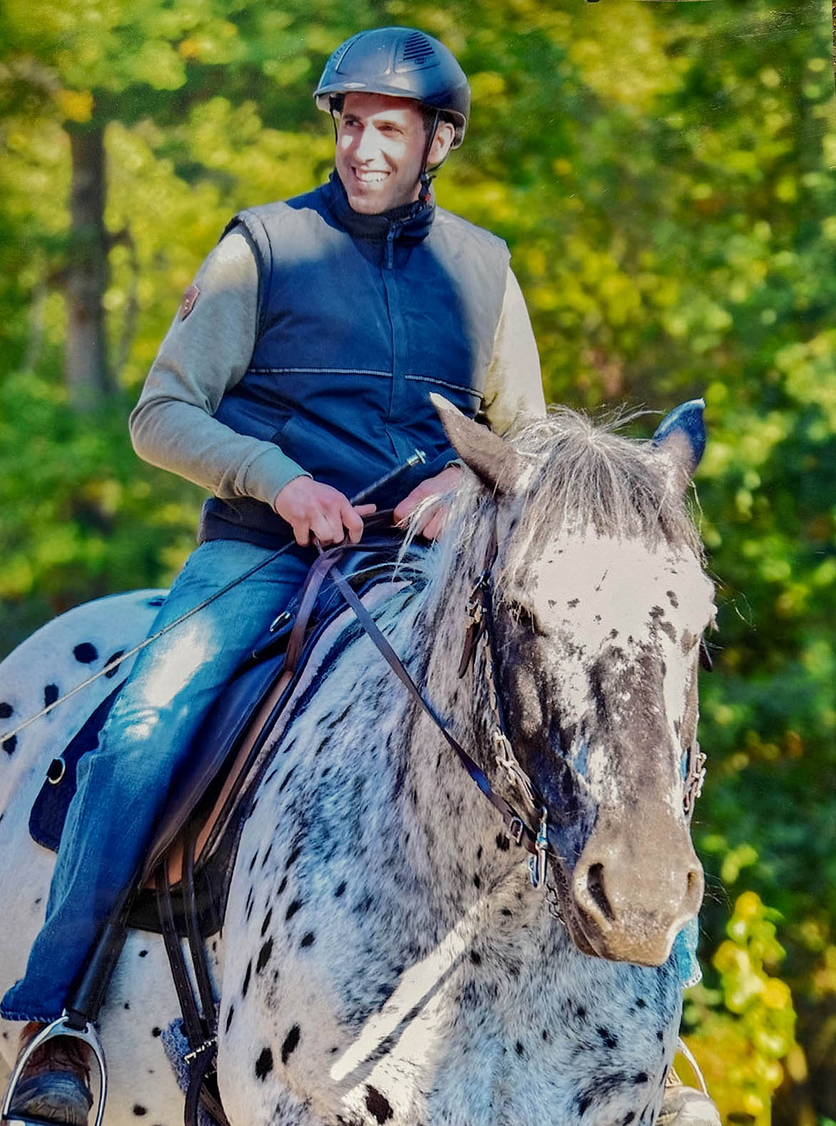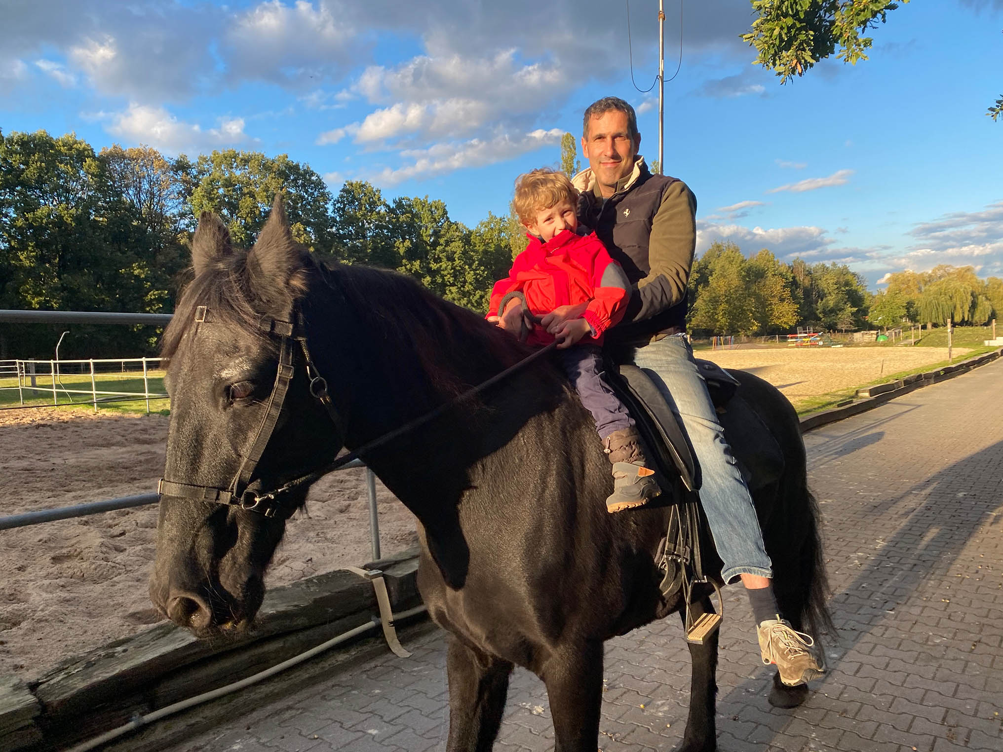 Vor mehr als drei Jahrzehnten entdeckte mein Mann seine Leidenschaft für Pferde, die auch mich in den Bann zog. Dank seiner strategischen Ausrichtung kann ich mich auf das Wohl unserer Schützlinge und das tägliche Hofgeschehen fokussieren. Mit seinem BWL-Studium im Bereich Internationales Steuerrecht unterstützt er mich nebenberuflich in der Buchhaltung unseres Betriebs. Sein besonderes Interesse gilt der Umsetzung von Kreislaufwirtschaft und erneuerbaren Energien.